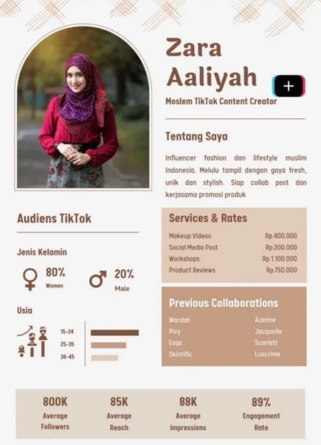 Dengan struktur yang rapi dan informatif, brand bisa dengan mudah melakukan cek rate card TikTok tanpa ragu. Di sisi lain, kamu pun sebagai kreator terlihat lebih siap dan profesional, meskipun masih di tahap pemula.